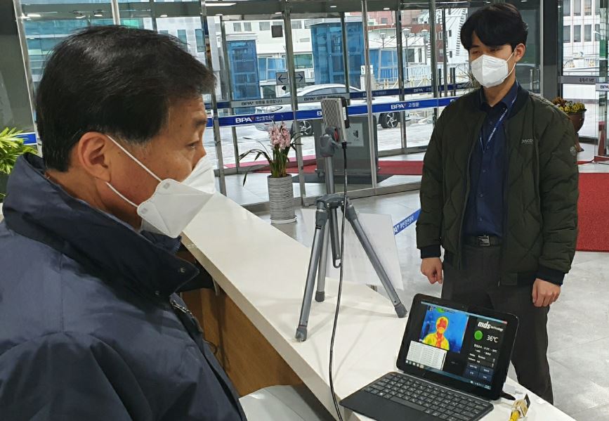 부산항만공사는 출입구에 열감지 카메라를 설치해 이를 통해 출입토록 하고 있다.