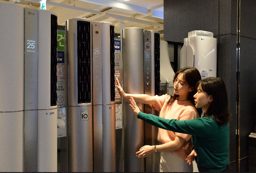 롯데백화점 부산본점 6층 LG전자 매장에서는 홈족을 위한 초미세먼지까지 제거하는 에어컨을 선보이고 있다.