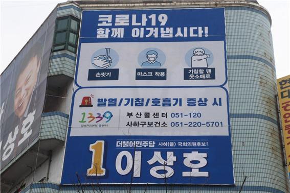 한편 이상호 예비후보는 선거사무소에 코로나19 대처법을 알리는 현수막도 붙였다.<사진> 이 후보는 “불안해하는 주민들께 뭐라도 도움이 되고자 했다”며 “같이 이겨내자는 마음을 전하고 싶었다”고 밝혔다.