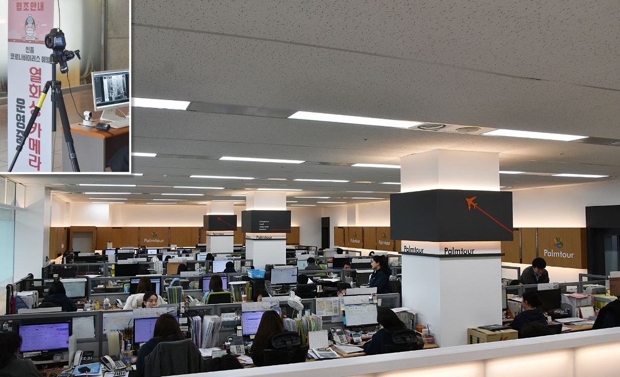 팜투어 본사 사무실 및 박람회 입구에 설치된 방역의 일환인 열화상 카메라.