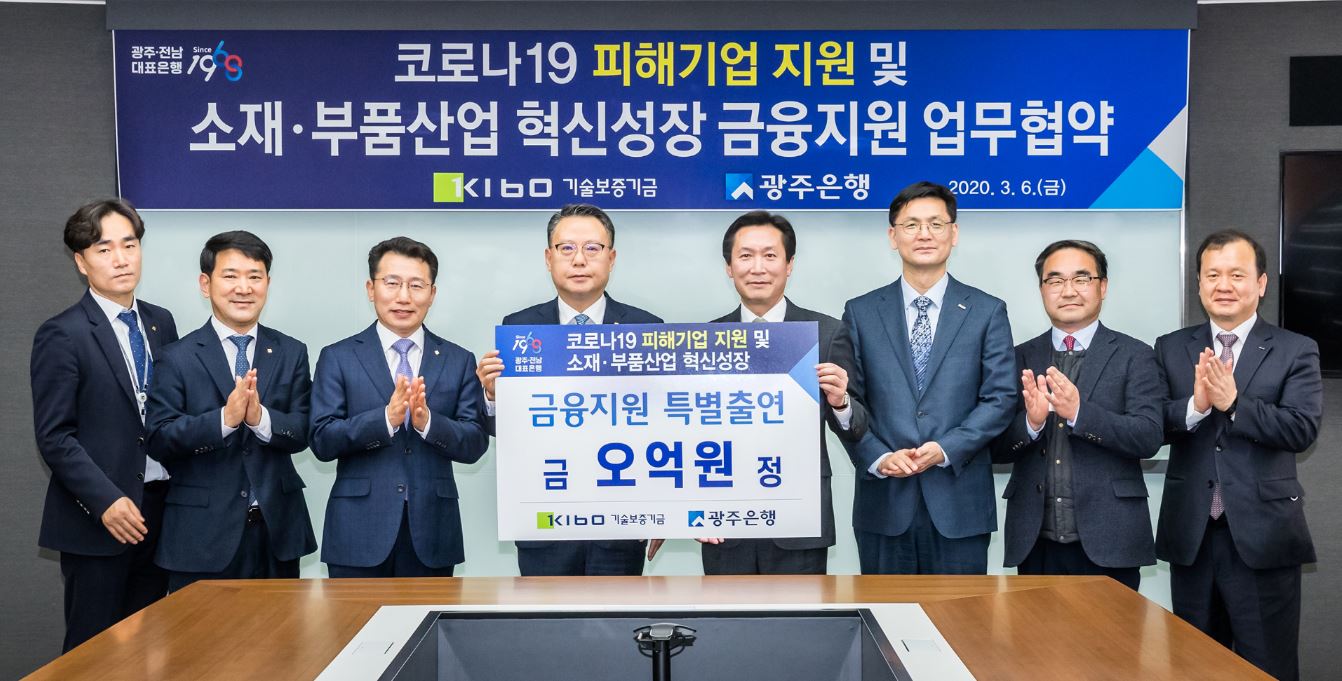 조규대 기보 전무이사는 “기보는 광주은행과의 협업을 통해 소재·부품 강소기업들의 일자리창출과 혁신성장을 지원하고, 신종 코로나바이러스 감염증 피해 등 정부의 중점 현안에 선제적으로 대응하는 금융지원 플랫폼으로서의 역할을 다하겠다”고 밝혔다.