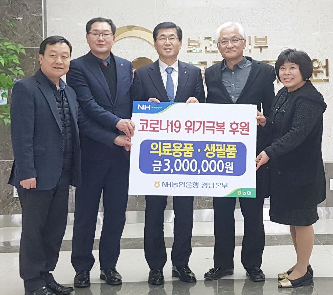 NH농협은행 경남본부(본부장 김한술)는 지난 9일 코로나19 대응병원으로 지정된 국립부곡병원(원장 정영인)에 위문품을 전달하고 감사와 격려의 마음을 전했다고 밝혔다.