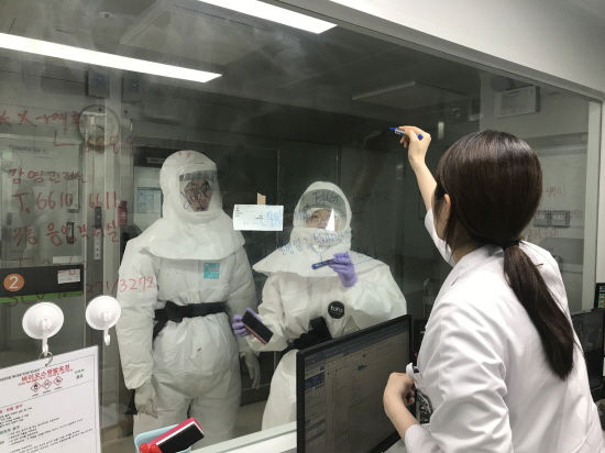 고신대복음병원 음압격리병상에서 근무 중인 의료진