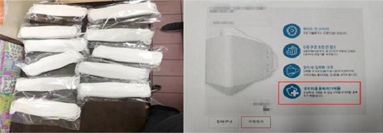 ▴묶음단위로 포장된 일반마스크 ▴의약외품 품목허가 제품으로 허위광고 (보건용 마스크 성능을 표시)