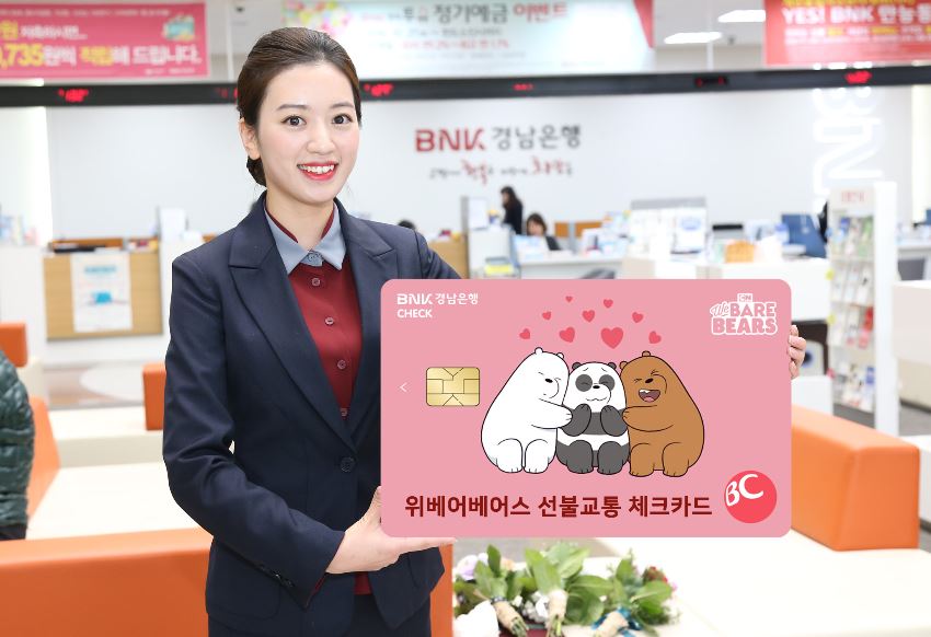 BNK경남은행은 8일 청소년을 겨냥해 ‘위베어베어스 선불교통 체크카드’를 출시했다.