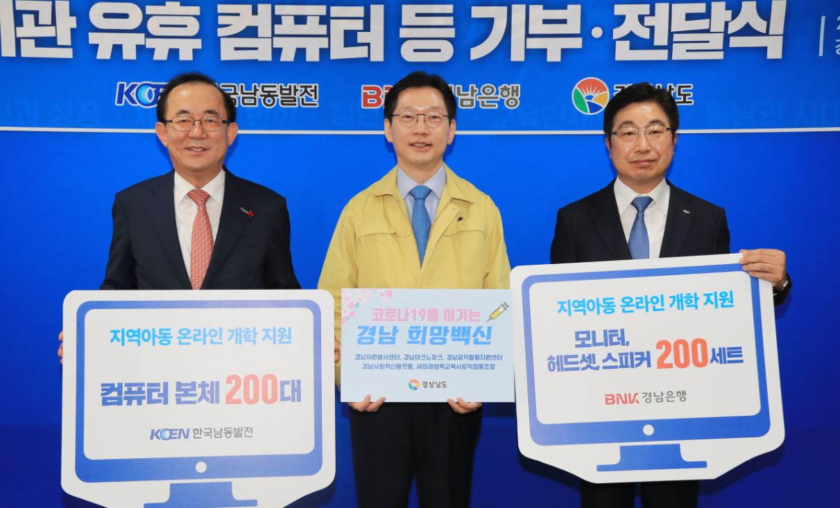 경상남도가 한국남동발전, 경남은행과 함께 코로나19로 온라인 개학을 맞은 지역 아동들의 온라인 개학 공동지원에 나섰다.