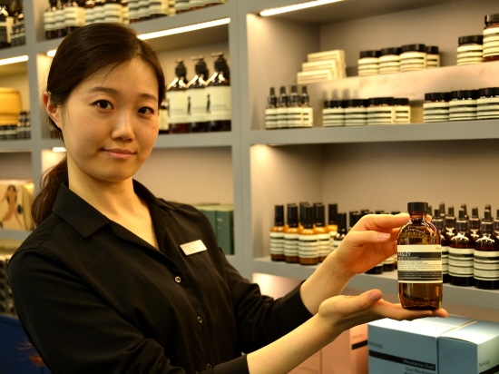 롯데백화점 부산본점 1층 이솝 매장에서는 봄철 송진가루가 기승인 5월에 맞춰 깨끗한 세정에 필요한 제품을 선보이고 있다.<사진>