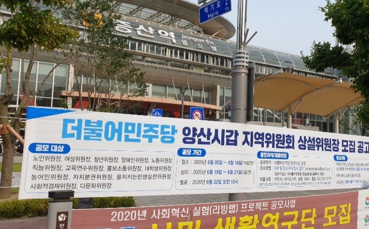 더불어민주당 양산시갑 지역위원회 공모 실시 현수막