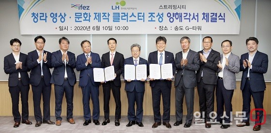인천경제자유구역청과 한국토지주택공사(LH), 스트리밍시티는 10일 송도국제도시 G타워에서 청라 영상·문화 제작 클러스터 조성을 위한 업무협약을 체결했다.