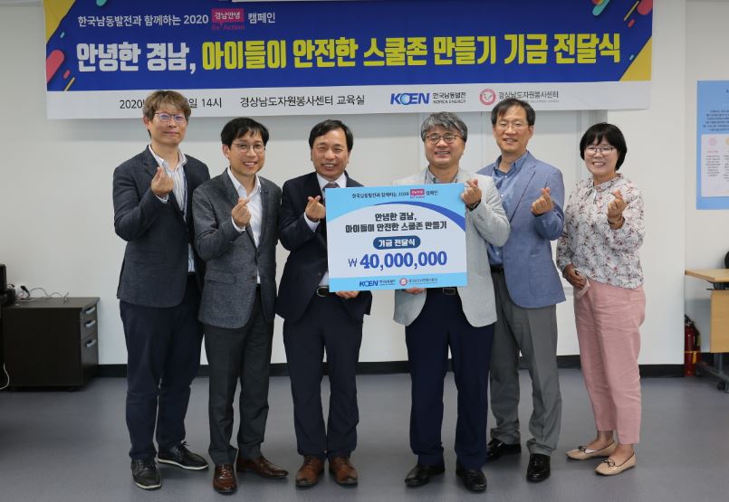 KOEN 한국남동발전(사장 유향열)은 지난 10일 경남지역 초등학생들의 안전한 보행 환경 조성과 어린이 횡단보도 사고를 줄이기 위해 경상남도 자원봉사센터에 후원금 4000만원을 전달했다.