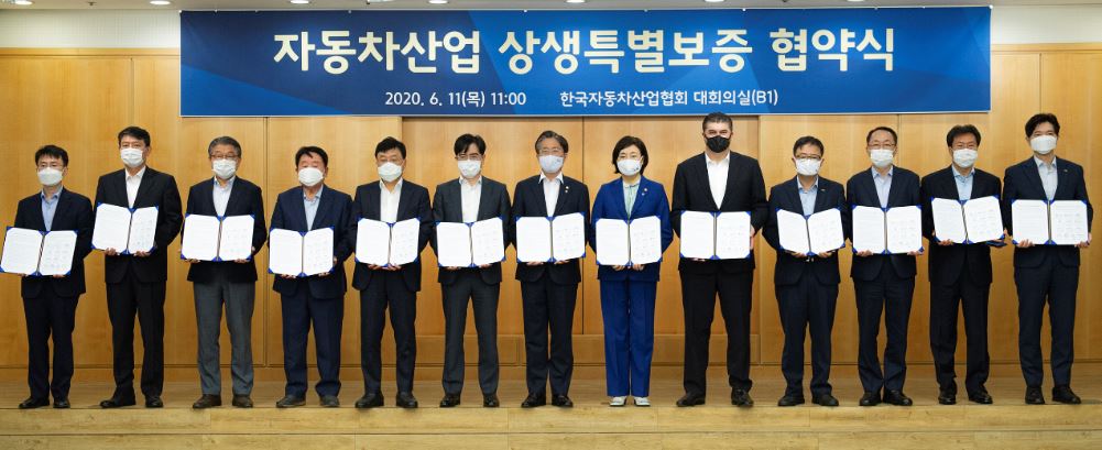 [부산=일요신문] 김희준 기자 = 중소벤처기업부(장관 박영선, 이하 중기부)와 산업통상자원부(장관 성윤모, 이하 산업부)는 지난 11일 한국자동차산업협회(서울 서초구 소재)에서 현대자동차그룹, 한국 GM, 기술보증기금(이하 기보), 지자체 등이 참여하는 ‘자동차 부품업계 지원을 위한 상생특별보증 업무협약’을 체결했다.