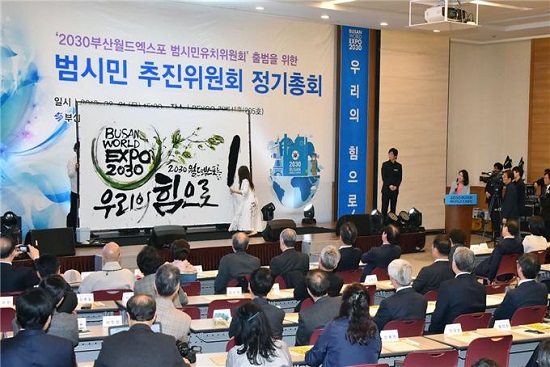 부산시는 2030부산월드엑스포 범시민유치위원회(대표위원장 변성완 부산시장 권한대행)가 15일 오후 3시 벡스코 컨벤션홀(205호)에서 법인전환 총회를 열고 사단법인으로 새로 출범한다고 이날 밝혔다.