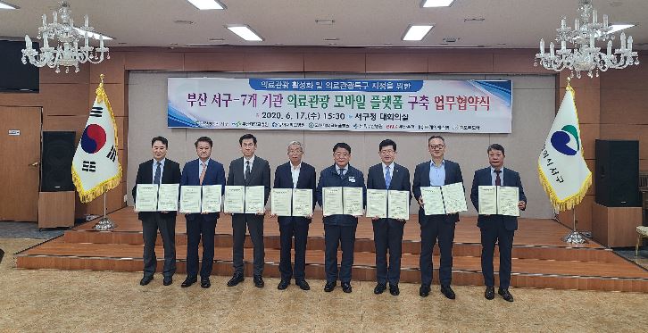 고신대학교복음병원(병원장 최영식)은 지난 17일 오후 서구청 회의실에서 서구청·부산대병원·동아대병원·삼육부산병원·부산은행·(주)케이에스넷·(주)모두모아 등과 ‘지역상생형 모바일 의료관광 플랫폼’구축을 위한 업무협약을 체결했다.