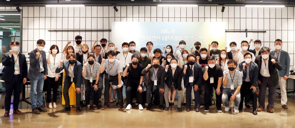 19일 서울 코엑스 스타트업브랜치에서 열린 제6기 기보벤처캠프 데모데이 및 수료식을 마치고, 단체 기념사진을 촬영하고 있다.