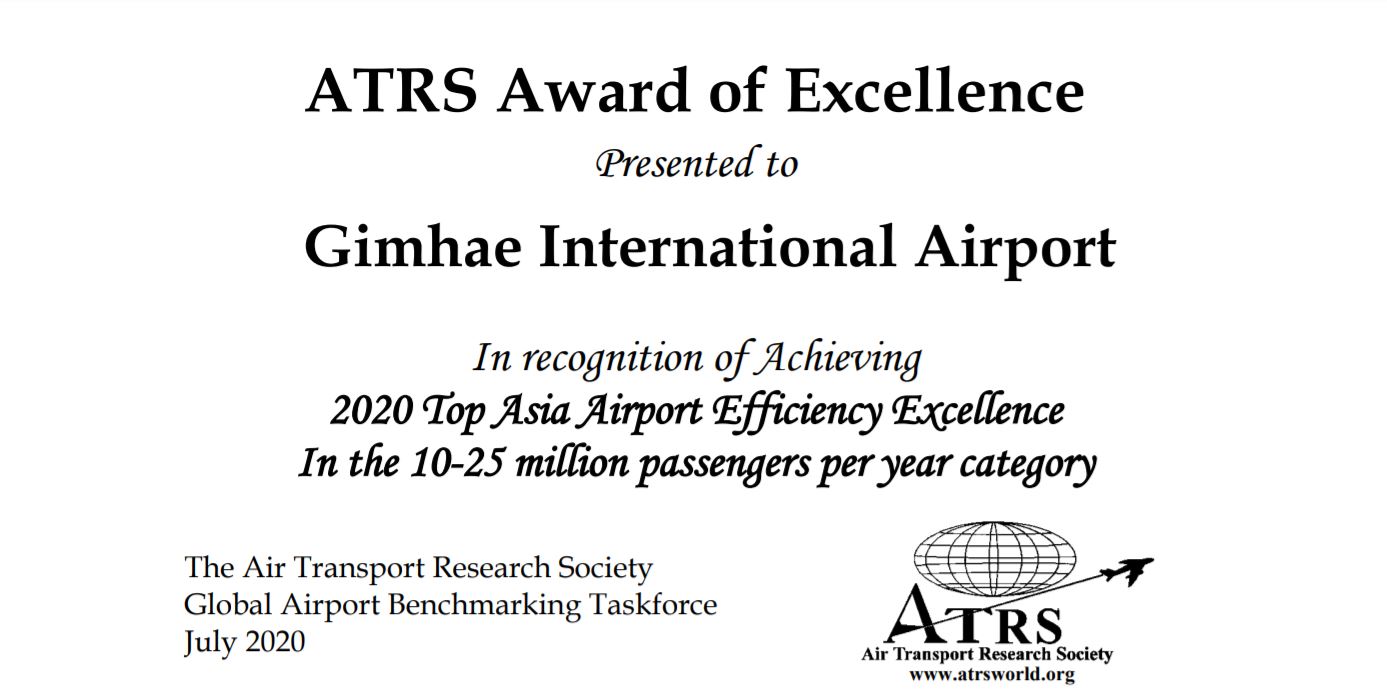 김해국제공항과 제주국제공항이 세계항공교통학회(ATRS)가 수여하는 공항상을 수상했다.