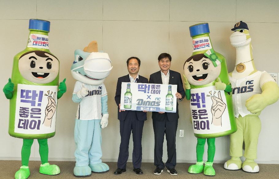 [경남=일요신문] 무학은 프로야구단 NC 다이노스와 함께 NC 다이노스의 마스코트인 ‘단디’와 ‘쎄리’가 들어간 ‘딱 좋은데이 X NC 다이노스’ 한정판을 출시했다.