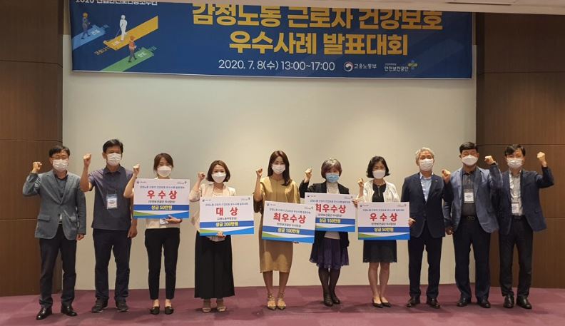 고용노동부(이재갑 장관)과 안전보건공단(이사장 박두용)은 ‘2020 산업안전보건강조주간대회’(7.6. ~ 7.10.)의 주요 행사인 ‘감정노동 근로자 건강보호 우수사례 발표대회’가 지난 8일 서울 코엑스에서 개최됐다.