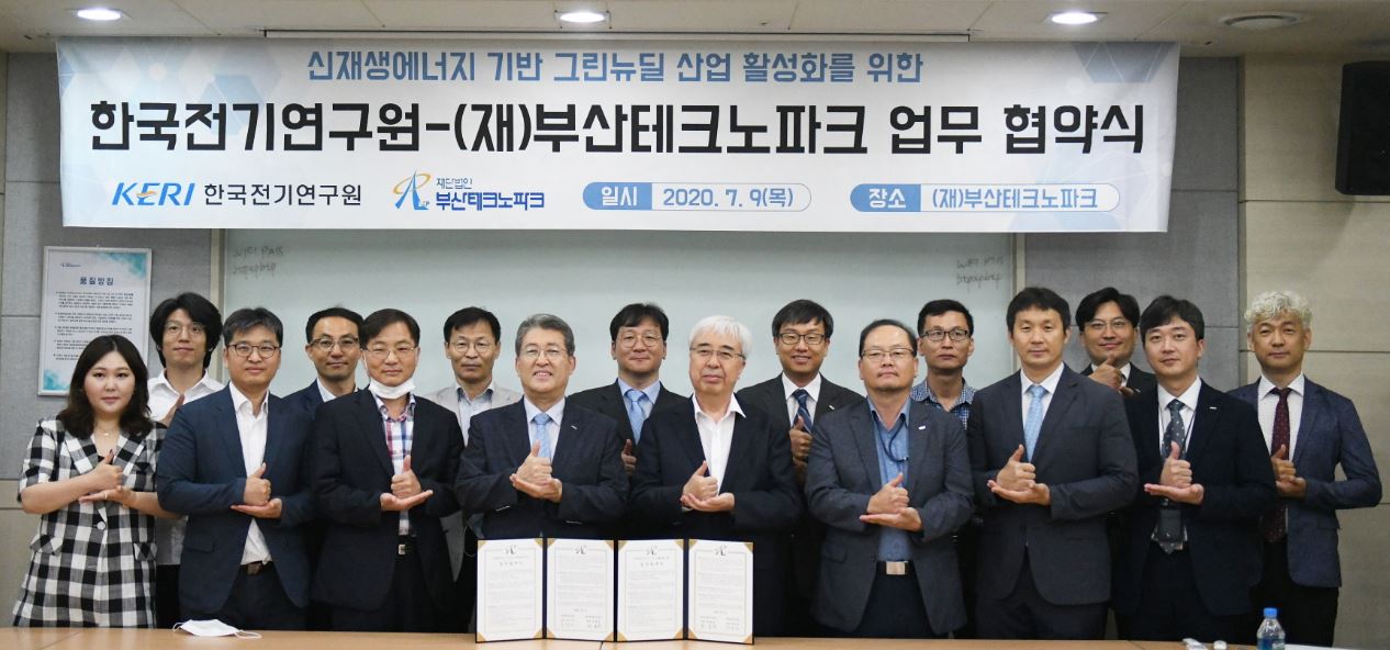 한국전기연구원이 부산테크노파크와 ‘신재생에너지 기반 그린 뉴딜산업 활성화‘를 위한 업무협약을 체결했다.