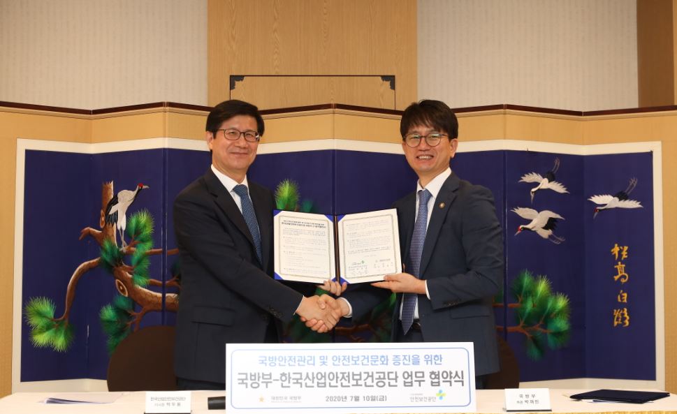 안전보건공단(이사장 박두용)과 국방부(차관 박재민)은 미래산업인력인 군 장병의 안전사고 예방을 위해 지난 10일 국방부에서 ‘국방 안전관리 체계 구축 및 안전보건 문화 확산을 위한 업무협약’을 체결했다.