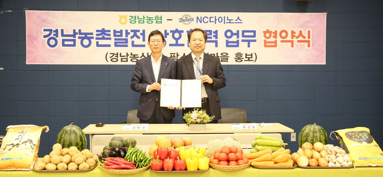 경남농협은 17일 프로야구 NC 다이노스와 창원NC파크에서 ‘경남농촌발전 상호업무 협약식’을 체결했다.