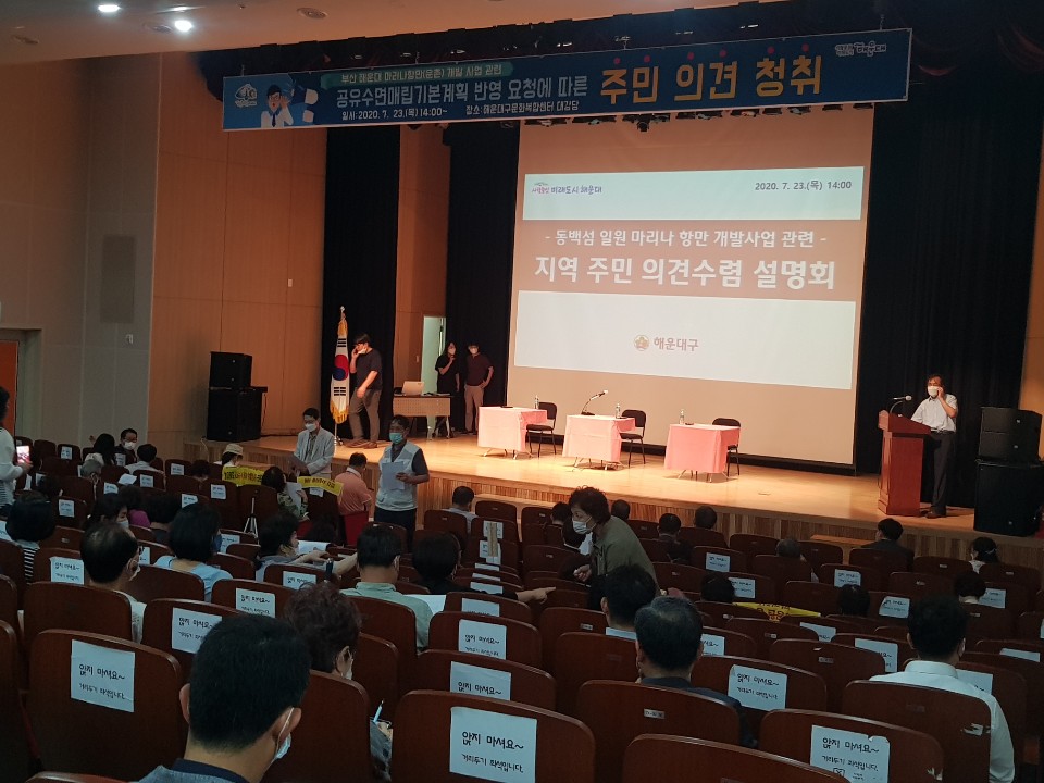23일 해운대구복합문화센터에서는 주민설명회도 열렸다. 일부 주민과 환경단체를 중심으로 반대 의견도 표출됐지만, 코로나19 등으로 지역 경제 침체를 돌파할 새로운 출구를 갈망하는 시민의 목소리도 높았다.