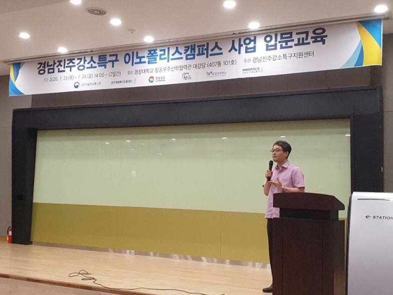 경상대학교 경남진주강소특구지원센터는 7월 23-24일 이틀 동안 경상대학교 항공우주산학협력관 대강당에서 예비 및 초기 창업자 40여 명이 참석한 가운데 ‘2020년 이노폴리스캠퍼스 입문교육’을 실시했다.