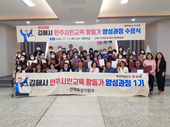 김해시는 지난 23일 오후 7시 시청 대회의실에서 제1기 민주시민교육 활동가 양성과정 수료식을 개최했다.<사진>