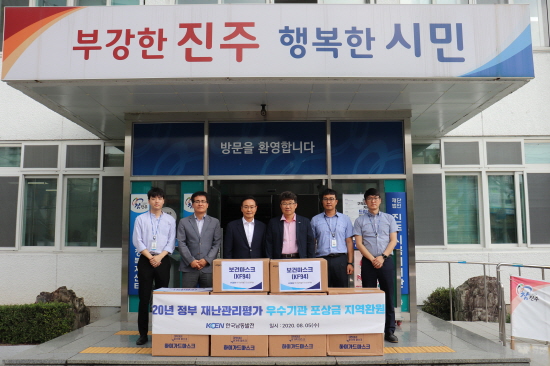 KOEN 한국남동발전(사장 유향열)은 5일 2020년 재난관리평가 우수기관에 선정돼 받은 포상금으로 KF94 마스크 5,000장(670만원 상당)을 구입해 본사가 위치한 경남 진주시 안전취약계층에게 기부했다.<사진>