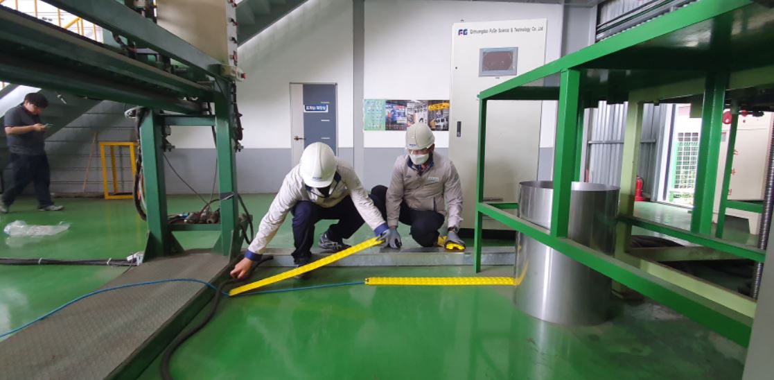 4일 한국남동발전 직원들이 협력중소기업 현장에서 안전시설을 개선하고 있다.