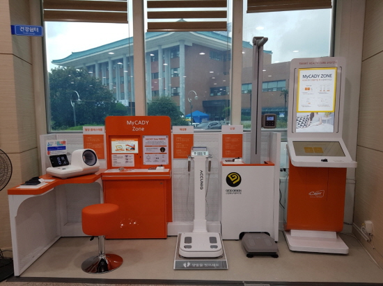 마이 헬스존은 대사증후군 항목을 포함한 건강관련 수치를 측정할 수 있는 스마트 장비인 캐디프로가 설치된 ICT 기반 무인건강관리 부스로 평일 오전 9시부터 오후 5시까지 이용할 수 있다.