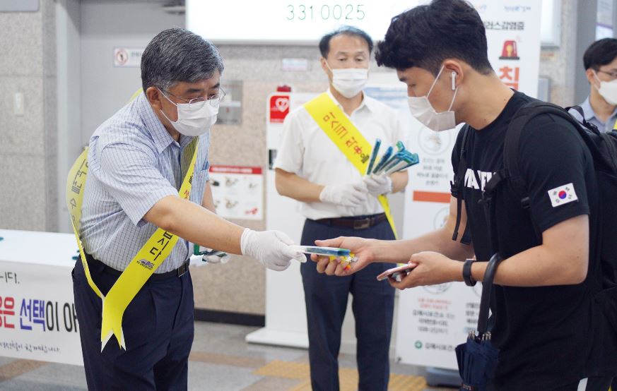 #부산김해경전철, 손부채 고객 나눔 및 마스크 착용 캠페인 실시