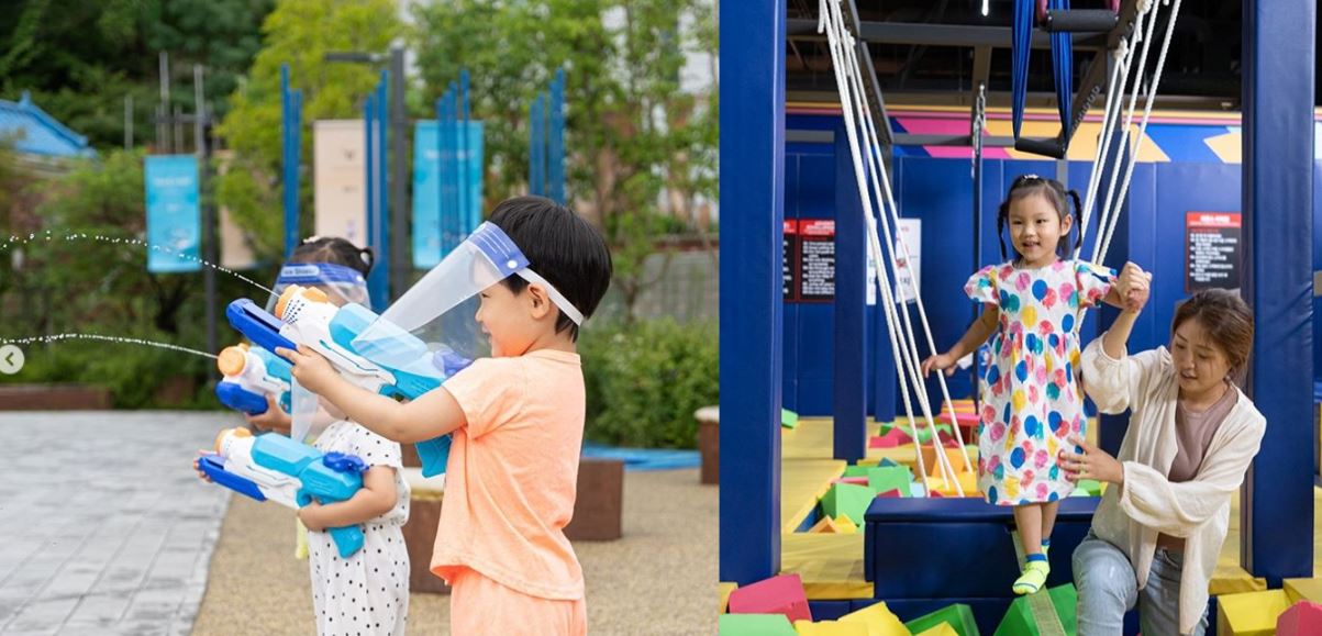 비접촉 거리두기를 준수하며 진행되는 ‘슈퍼키즈 물총올림픽’ 행사는 코로나19 확산 및 감염방지를 위해 페이스 쉴드를 착용하고 진행된다. 7세부터 12세까지 이용 가능하며, 다음달 6일까지 진행된다.