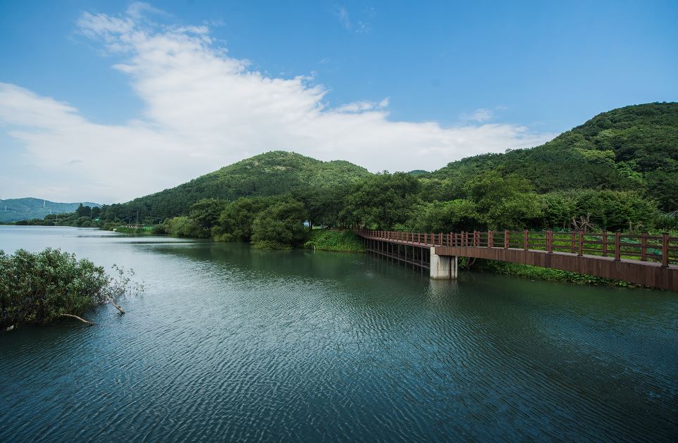 김해시는 정부 공모사업 선정으로 6억원을 확보, 지난해 4월부터 기존 포장길에 목교(55m)와 정자(3개), 돌계단(1개), 벤치(8개), 야외운동기구(6개), 안전펜스(416m), 인명구조함(5개)을 설치했다.
