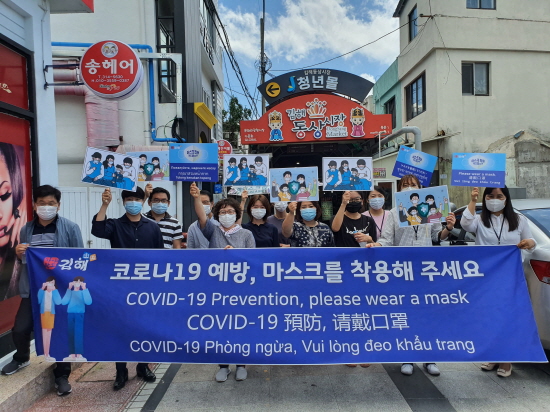 김해시는 무더운 날씨와 코로나19 장기화로 다소 느슨해진 방역수칙 준수의식을 재확립하기 위해 휴일인 지난 16일 외국인 유동인구가 많은 동상시장, 종로길 등에서 외국인주민에게 마스크 1,000매를 배부하며 착용을 독려하는 캠페인을 실시했다.<사진>