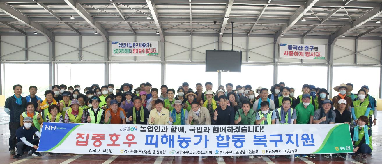 이날 복구지원에는 경남농협 윤해진 본부장, 농협중앙회 황성보 이사(동창원농협조합장), 부산농협 곽정섭 본부장, 울산농협 문병용 본부장, NH농협은행 울산영업본부 최정훈 본부장, 농협시군지부장, 무안농협 박위규 조합장, 경남농협시너지협의회(계열사), (사)고향주부모임 및 (사)농가주부모임 경남도지회 회장단 등 임직원 200여명이 참여해 폭염 속에서도 복구지원에 구슬땀을 흘렸다.