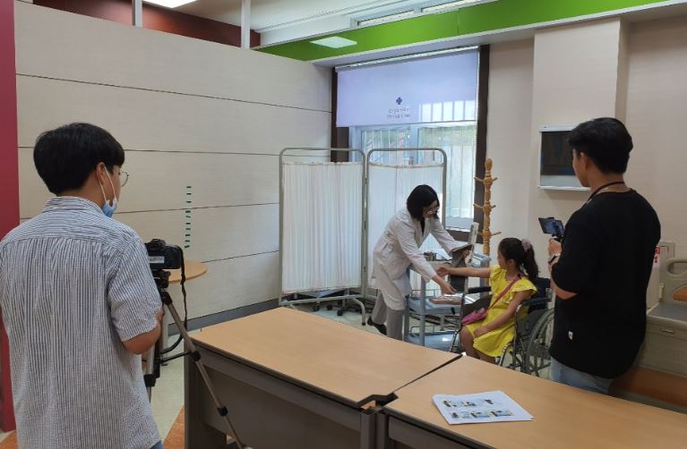 경상대학교 국제어학원이 제작하는 온라인 영어캠프 촬영 장면.