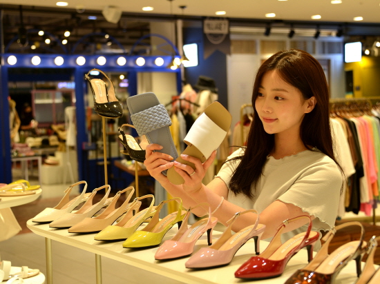 롯데백화점 부산본점 7층 사뿐 매장에서는 여름철 필수 아이템 슬리퍼를 선보이고 있다.