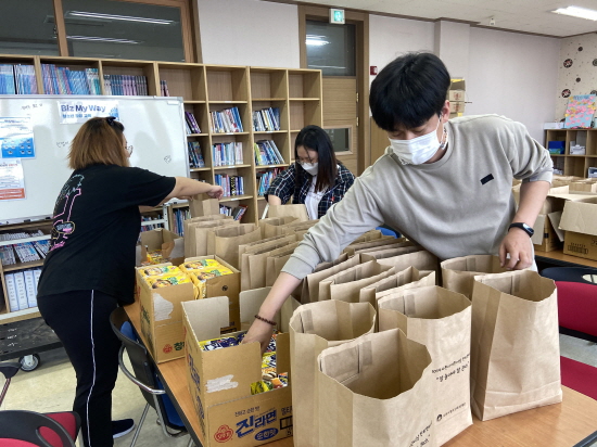 비대면 긴급돌봄지원은 전화 상담과 SNS를 통한 생활관리, 주 1회 가정으로 급식지원 식자재 꾸러미를 제공하고 있다.
