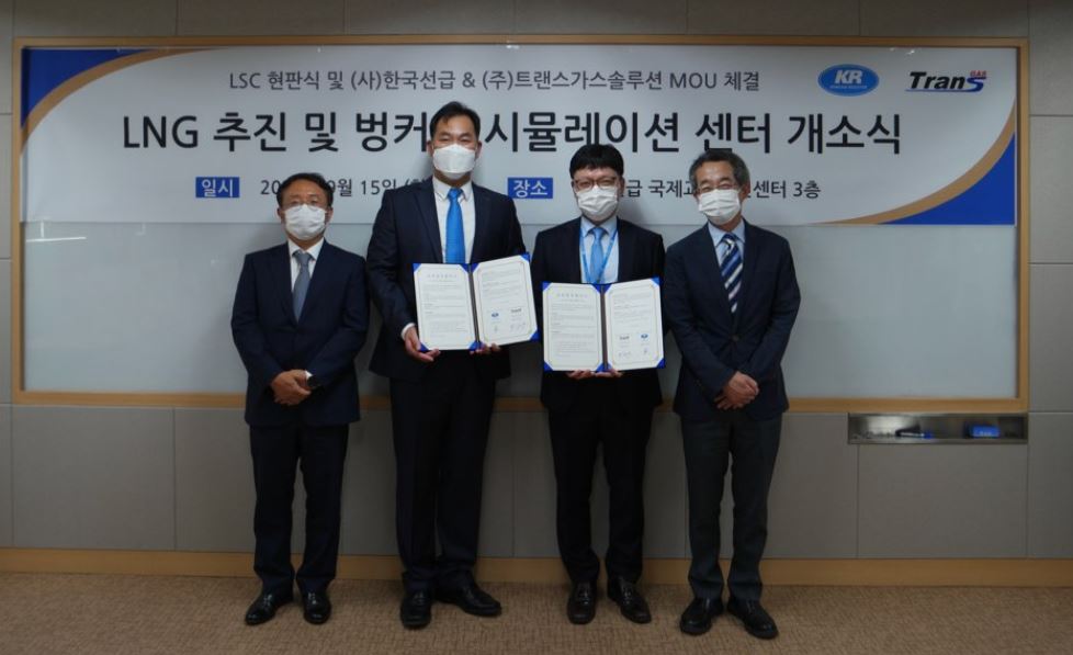 한국선급은 15일 LNG 추진 및 벙커링 시뮬레이션 센터(KR LSC) 개소식과 교육훈련 시스템을 위한 트랜스가스솔루션과의 MOU를 체결했다.
