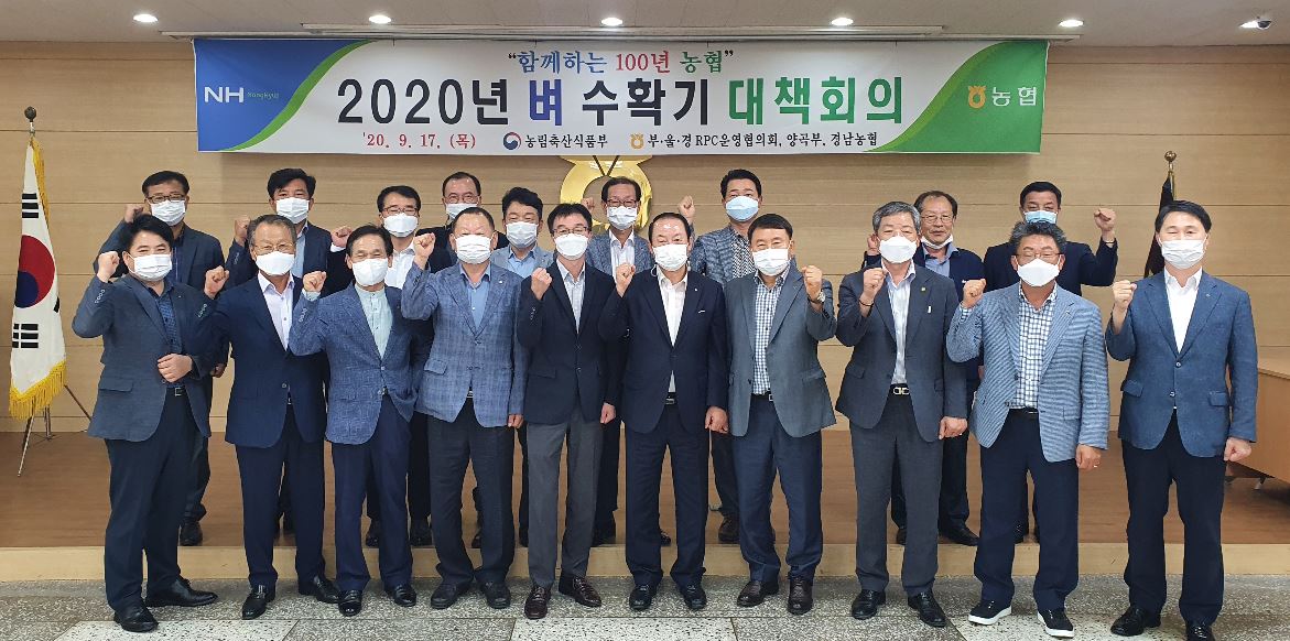 경남농협(본부장 윤해진)은 지난 17일 의령농협 회의실에서 RPC운영 부울경협의회(회장 김용구)산지농협 조합장 18명, 양곡부 최선식 부징, 농림축산식품부 배우용사무관 등이 참석한 가운데, ‘2020년 RPC운영 부울경협의회 벼 수확기 대책회의’를 갖고 올해 수확기 수급현황과 원활한 벼 매입을 위한 다각적인 대책을 마련하여 추진키로 했다.