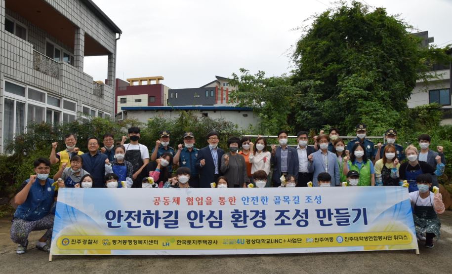 이번 ‘안전하길’ 프로젝트는 경상대 LINC+사업단과 한국토지주택공사, 진주경찰서, 진주대학생연합봉사단 위더스, 평거동 행정복지센터, 진주여자중학교 등 관계자 60여 명이 참여하여 민·관·경·사·학이 함께 사업지 일대 골목길 환경을 개선하는 내용으로 추진됐다.