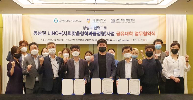 경성대는 17일 경남과기대, 부산가톨릭대와 공동성과관리 컨설팅 개최 및 동남권 LINC+ 사업 공유대학 업무 협약식을 가졌다.