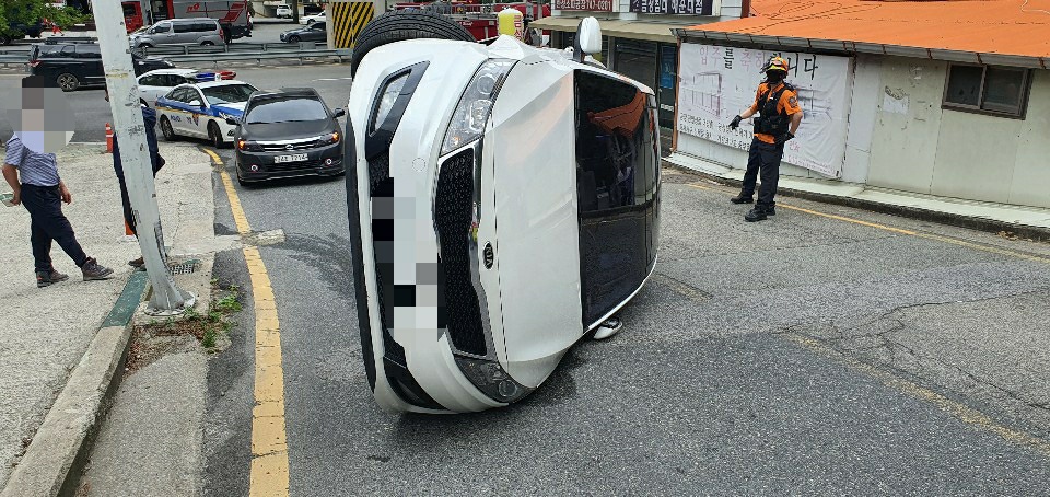 이 충격으로 자동차는 전도됐으나, A 씨는 정수리에 약 15cm 정도의 찰과상만 입었을 뿐 생명에는 지장이 없는 것으로 전해졌다.