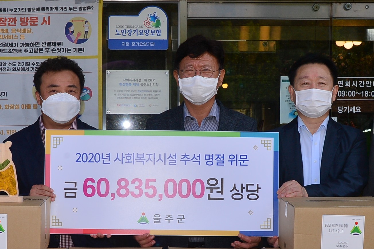 울주군(군수 이선호)은 23일 관내 사회복지시설에‘2020년 추석맞이 사회복지시설 위문품’을 전달했다.
