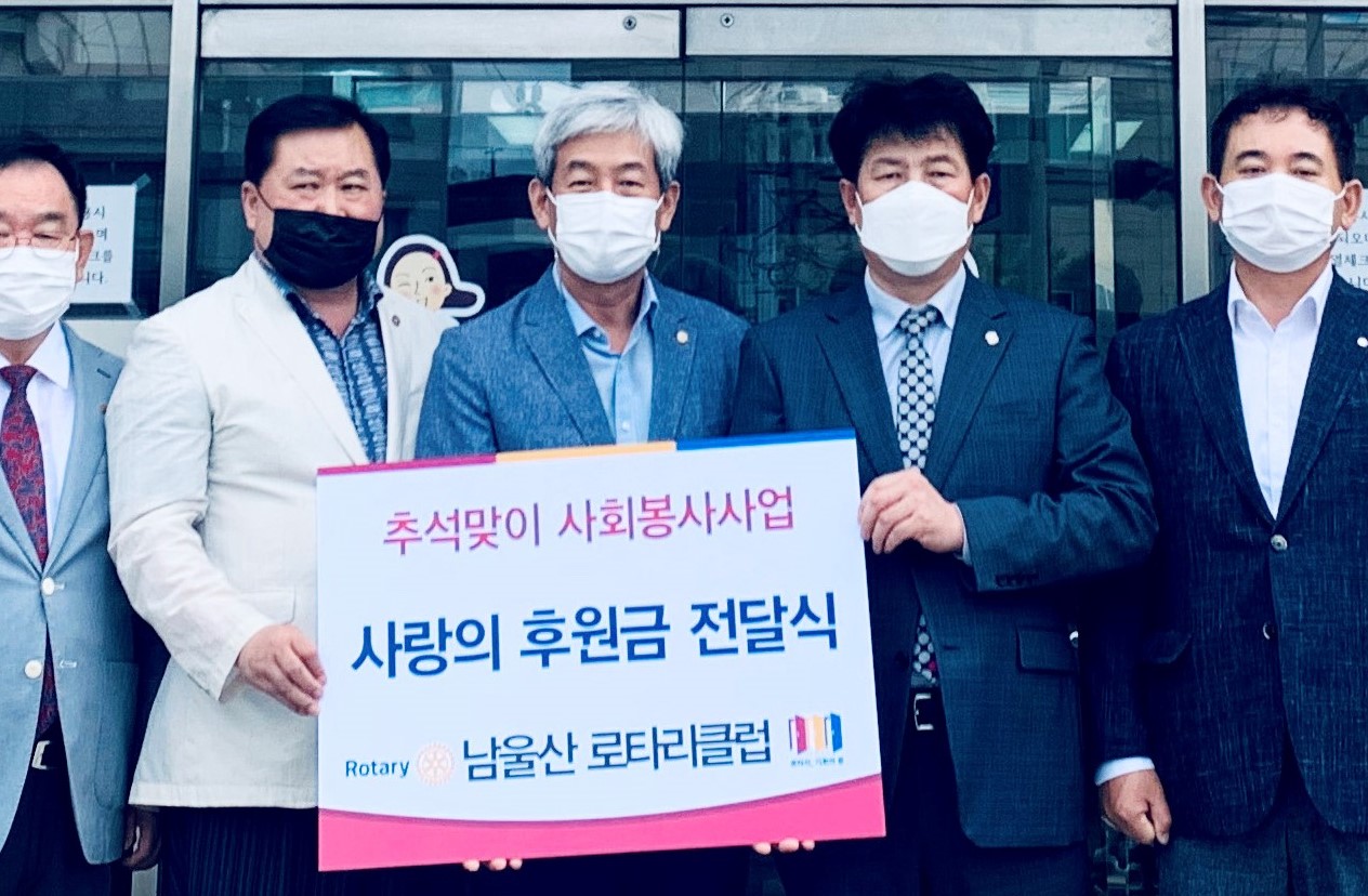 김두만 남울산로타리클럽 회장은 “코로나19로 경기가 좋지 않아 생활이 더욱 힘드신 분들이 많다”면서 “이번 사랑의 후원금 나눔행사가 그분들에게 희망을 전하는 따뜻한 추석 선물이 됐으면 한다”고 말했다.