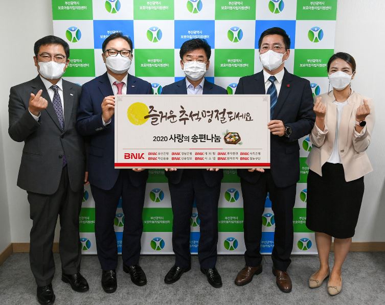 BNK금융지주 경영지원부 지영선 사회공헌팀장은 “코로나19 사태로 힘든 상황이지만 마음은 더욱 따뜻한 추석 명절이 되길 바라며 이번 행사를 준비했다”며 “BNK는 앞으로도 지역과 이웃에게 도움이 되는 다양한 사회공헌활동을 지속적으로 추진하겠다”고 말했다.