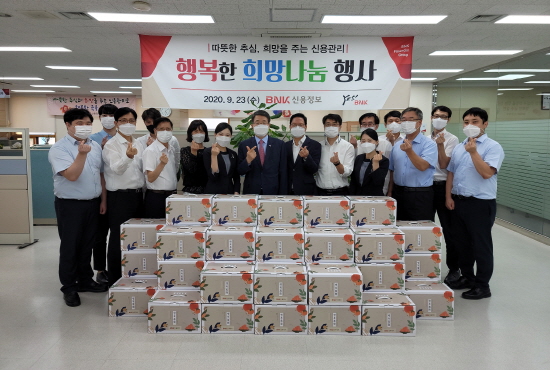 BNK신용정보 성동화 대표이사는 “코로나19 등으로 어느 때보다 힘든 상황이지만 마음만은 풍성한 추석 명절이 되길 바란다”며 “BNK신용정보는 앞으로도 지역의 이웃들에게 힘이 되는 기업이 되기 위해 최선의 노력을 다하겠다”고 말했다.
