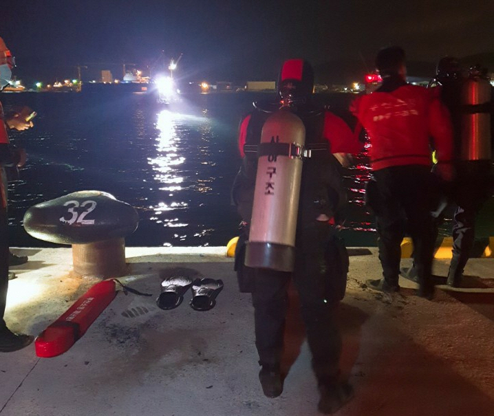 24일 오전 2시 5분경 부산시 서구 국제수산물센터 내 부두에서 60대로 추정되는 남자가 산타페를 몰다가 차량과 함께 바다에 빠졌다.