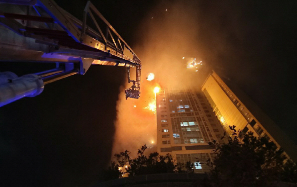 [울산=일요신문] 지난 8일 오후 11시 7분께 울산시 남구 신정동 33층짜리 주상복합아파트에서 대형화재가 발생했다.