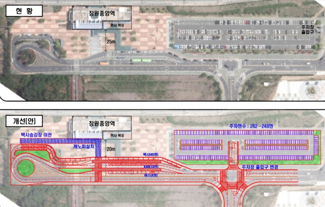 ‘창원중앙역 환승시설 개선사업’은 창원 중앙역 광장 주변의 교통 혼잡을 완화하기 위해 총 21억 원(국비 6.3억, 지방비 14.7억) 규모로 진행된다.